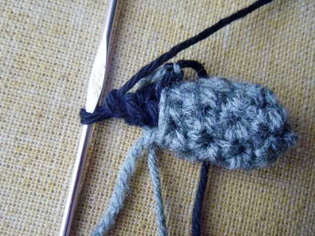 Rnds 1-6: en cada ª a través de (6 CTS). Cambiar a hilado negro. Llene el brazo con relleno. Doble brazo en la mitad. SL st a través de sólo dentro de bucles de puntadas junto a unos de otros. Bucles de CH1. Sl st en la parte posterior de siguiente sts adyacentes, ch 1. SC en San fije apagado.