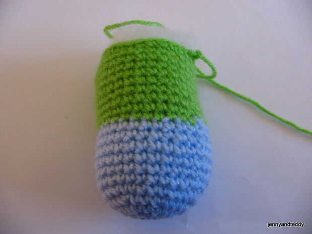 Rematar y dejar la cola larga para coser. Y relleno de poliéster firmemente.