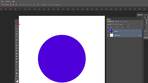 Seleccionar "Herramienta mover" y haz clic en estos botones para poner su forma en el centro del documento.
