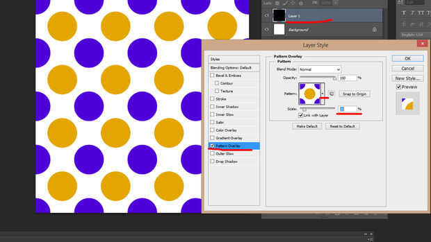 Si desea cubrir cualquiera de sus capas con el patrón: uso haga doble clic en el capa - superposición de patrón.