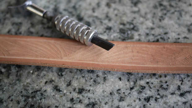 Este proyecto como ustedes saben fue en una banda. Había ya agregué una línea de cada lado de la correa con una Ranuradora de los fabricantes de silla de montar.