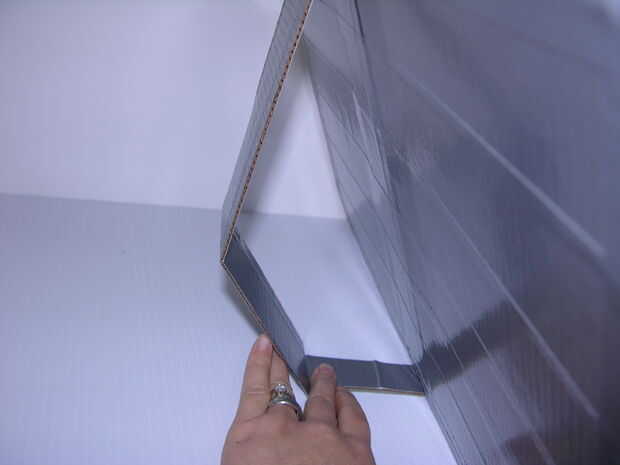 Porque he usado una caja de cartón que había sido utilizada. La porción del pie doblado y no soporte. Es el peor escenario para un soporte, bien! No te preocupes, aunque. Soy un solucionador de problemas. Cinta adhesiva dos taquetes de 3/16 de pulgada en la parte posterior del pie de poyo. Problema solucionado.