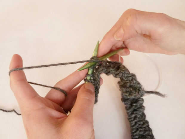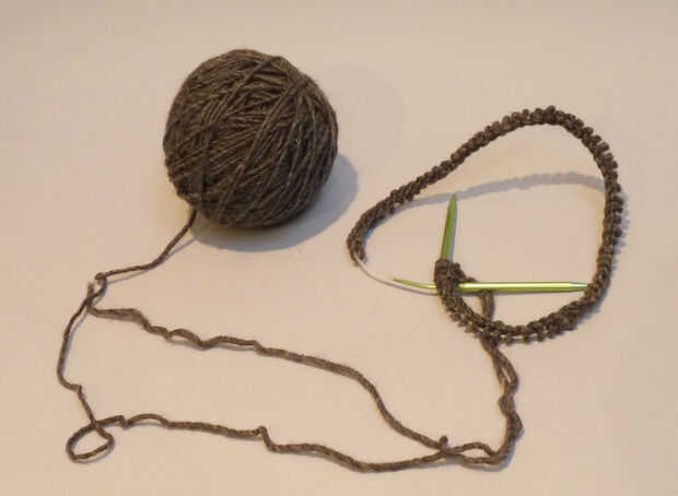Teniendo cuidado de asegurarse que ninguno de sus puntos estén torcido (hago esto por lo que del punto nudoso bits hacia el interior y todos los lazos en las agujas de estar en el exterior), Únete a su punto por punto en la primera puntada hiciste.