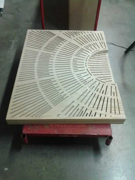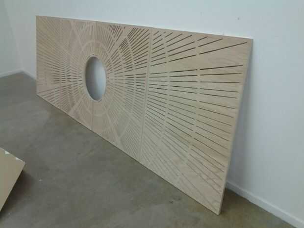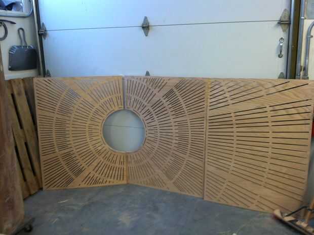 Una vez que exitosamente ha cortado uno de los paneles estampados, repita el proceso en el segundo panel, ser consciente de qué lado de la superficie que desea han expuesto al router. Después se corta el segundo panel central idéntico, repita el proceso con los paneles de los extremos. Asegúrese de utilizar un compresor de aire para soplar cualquier polvo excesivo en las marcas de corte. Una vez que todos los cortes han sido hechos y sacan el polvo, debe tener una madera completamente modular cortar la pieza. Usted desea configurar los paneles para ver cómo coincide con el mejor grano y marcar donde conectas los bordes de los paneles con juntas de madera domino. Una vez que haya hecho las marcas para los puntos de conexión, usarás una fresadora de espigas domino para cortar juego incisiones en el borde de la capa, asegurándose de que cada conexión incisión a lo largo de los bordes coincidirá exactamente con sus correspondientes cortes de domino. Una vez realizado cada corte de domino (puede decidir cómo muchos usted quieren hacer) y ha insertado los dominós, usted puede empujar los paneles juntos a lo largo de sus bordes. Debe poder apretarse bien.