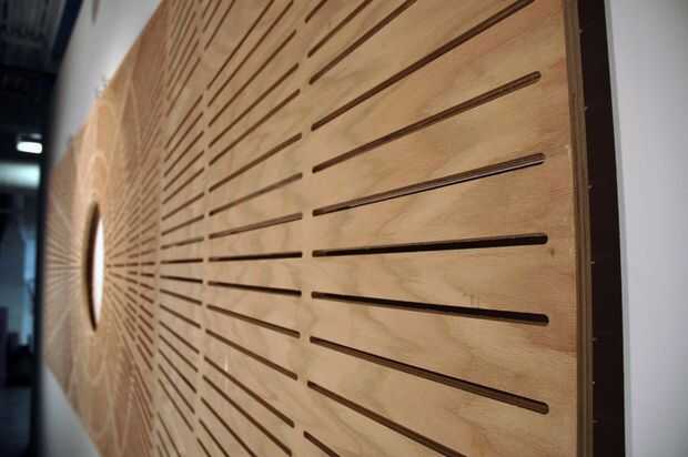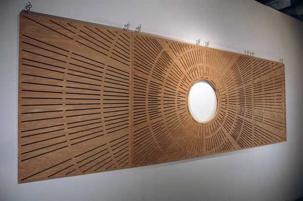 Ya que estoy tratando de elevar el valor del objeto industrial, creo que es apropiado para tratar en forma expositora. Me parece que colgando en la pared alcanza este nuevo estado fetichizado, tratar como una pared valiosa colgada la pintura. Para ello necesito insertar un aparato que cuelga en la rejilla del árbol recién construida. Una manera eficiente de hacer esto es por dos agujeros poco profundos en el borde superior de la capa e insertar ojales roscados. Utilice algunos epoxy y asegúrese de que los anillos se hunden en la madera al ras con el borde. Dé tiempo para curar y una vez seco, puede atornillar fácilmente en ganchos de ojo. Esto permitirá que la rejilla del árbol colgar de varios hardware colgante. Es fácil de colgar la pieza de panel por panel por escarpias. La pieza traduce un nuevo significado al diseño del objeto origen, patrón y la función.