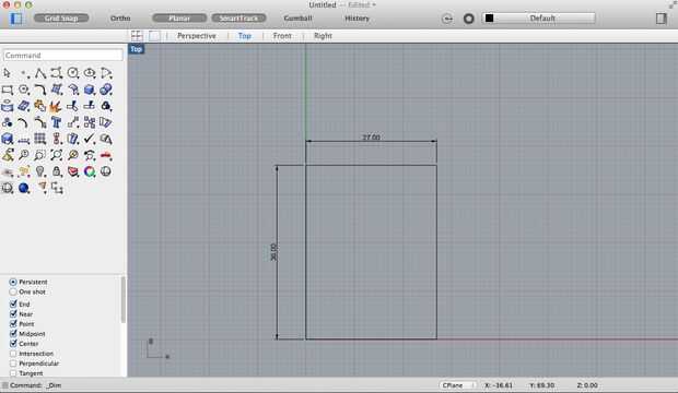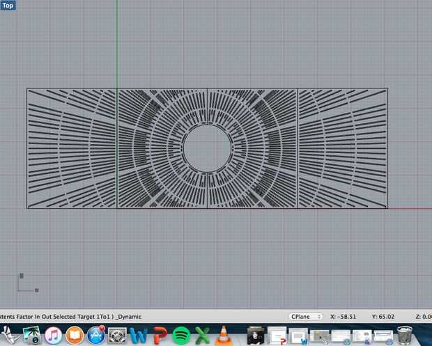 Para este proyecto he decidido mi pedazo de modelo después de que un árbol de cuatro panel de la rejilla con dos tipos de patrón distinto que crea una continuidad. El primer paso para crear la escultura tallada de madera es elegir y usar un programa de CAD en su computadora. Este dibujo será más tarde entrada al software del router CNC y corte con precisión de la máquina. Tiendo a utilizar Rhino, un programa de gran representación 3D que le permite dibujar objetos tridimensionales en los puntos de vista diferentes. Para este tipo de proyecto, funcionará otro programa de dibujo vectorial como Adobe Illustrator. Sólo tendremos que dibujar el patrón de una vista dimensional 2 o de a vista de pájaro. En primer lugar asignar unidades de dibujo del programa de medición, en este caso utilizo pulgadas. Utilizando la función de dibujo del rectángulo de Rhino precisamente yo puedo dibujar un rectángulo del mismo tamaño que uno de los paneles individuales de la rejilla del árbol. Como los dos paneles centrales tienen círculos de semi cortados de ellos, te quiero a continuación cree semicírculo en el plano. En primer lugar encontrar el punto medio de una de las líneas de tu rectángulo dibujado y partir de ahí crear un círculo utilizando la herramienta de círculo de Rhino. Asegúrese de que el círculo coincide con el diámetro medido del semicírculo de la rejilla centrada en el árbol. Utilizar la herramienta split en Rhino, puede aislar y eliminar una mitad del círculo que has creado así como la línea central que divide el círculo completo. Resalte todas las líneas de tu rectángulo restante y el semicírculo y hacerlos un todo objeto con la herramienta de combinación de Rhino. Esto actuará como el parámetro de la pieza de madera que te talla el patrón de la máquina de CNC.