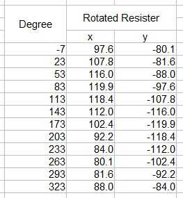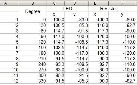 Coordenadas (x, y) de LEDs y resistentes a la posición se obtienen por