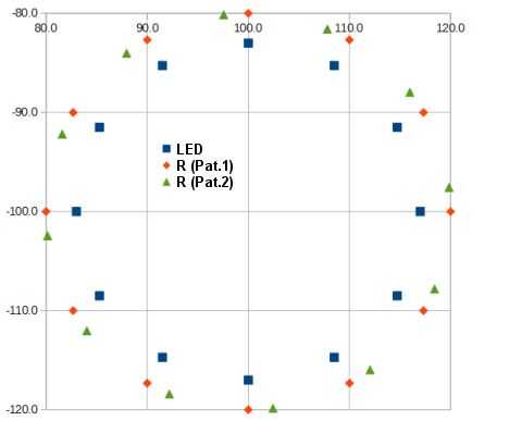 Las posiciones de LED, Resisters(Pattern1) y Resisters(Pattern2) se muestran en el cuadro gráfico de Calc.