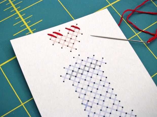 Utilizando hilo de bordado de 2 capas, trabajar tus puntadas en filas, costura líneas en una dirección primero y luego trabajar hacia atrás para cruzar cada puntada en la dirección opuesta. Completa todas las puntadas en un color antes de pasar al siguiente color.