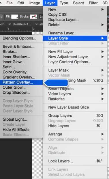 - Ir a capa > estilo de capa > superposición del patrón. Se puede cambiar la escala para obtener un efecto deseado.