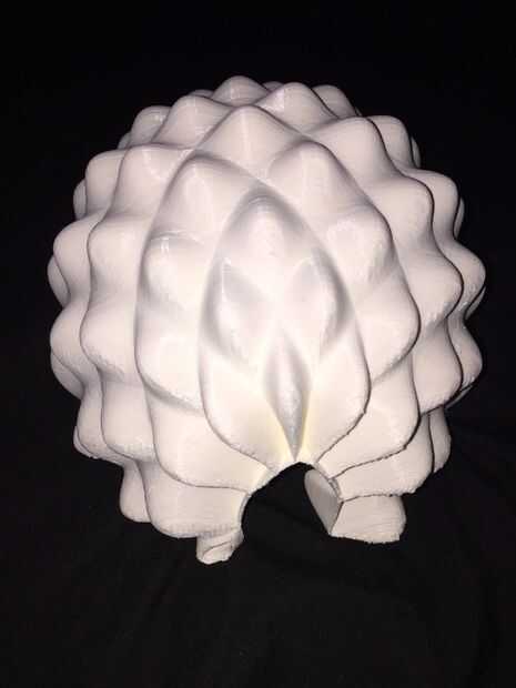 Impresión tomó alrededor de 15 horas, cuando sobre su eje vertical más que horizontal se reduce el tiempo de impresión por la mitad del tiempo. También hay muchos menos apoyos si estas técnica se utiliza. Mi bonita acabó con el pabellón como un casco de Halloween.