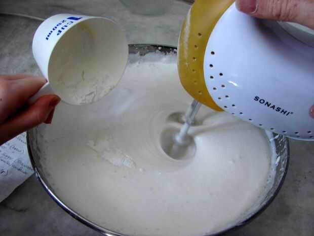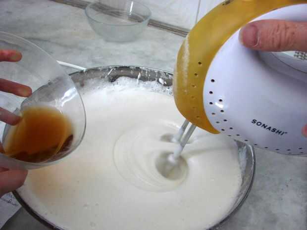 Añadir la vainilla, el vinagre y la fécula de maíz (maicena) y a través de la mezcla.  Esperemos que la mezcla será capaz de mantener su forma (no te preocupes si es un poco líquida, todavía podrá degustar fantásticos!).