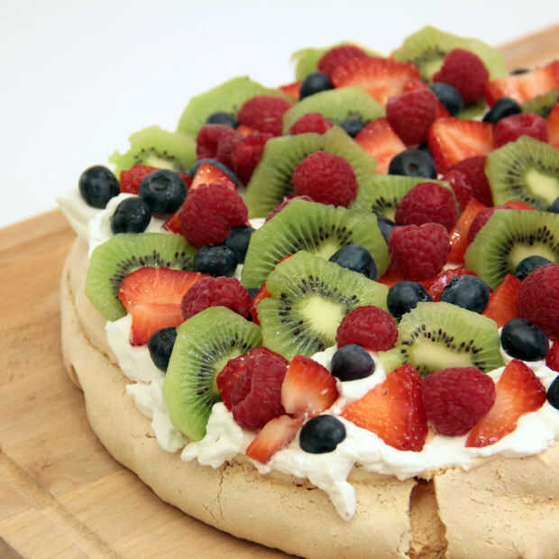 nombre de la bailarina, este tradicional postre australiano es tan ligero, delicado y delicioso como usted esperaría. Una gruesa capa de crema batida apilados en un pastel de merengue al horno, con cualquier fruta fresca puede conseguir sus manos en - una adición perfecta para cualquier picnic de verano!