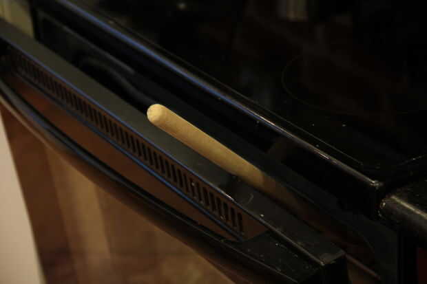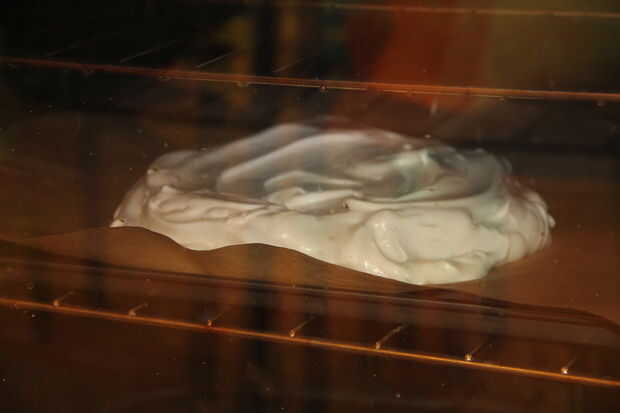 Cuando las cosas se ven bien, apague el horno pero dejar a la pavlova en allí se enfríe lentamente. Apoyo abrir la puerta con una cuchara de madera.