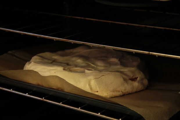 Hornear durante unos 80 minutos, hasta que la pavlova es de oro y es crujiente. Si se sobre-cuece al horno lo, el merengue se colapsará sobre sí mismo. Todavía se sabor, pero será más denso. Si sobre la superficie del merengue formarán gotitas azucaradas, sabrás que ha demasiado supuración de líquido de la pavlova es un signo de le.