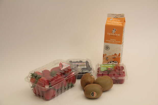 Para el topping, necesitará también fruta fresca! Todo trabajo de frutas más bien con la base dulce y neutro de la pavlova y nata, así que siéntase libre de ser creativo! He encontrado el tarter frutas funcionan mejor y por lo que he trabajado con lo que fue en la temporada a mi alrededor. He utilizado fresas, kiwi, arándanos y frambuesas.