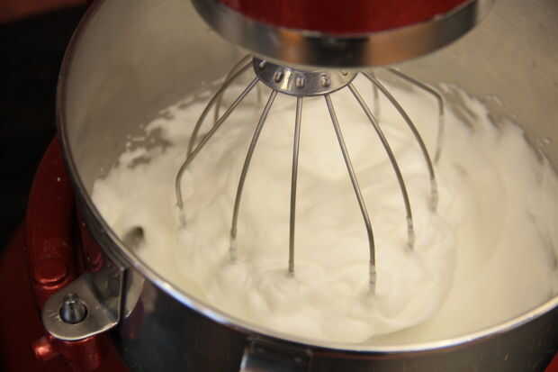 Hay un montón de dulzura de azúcar y la vainilla en el merengue, por lo que su crema no necesita mucho. Coloque todos los ingredientes en la batidora (ahora limpiada) y batir hasta que se formen picos gruesos.