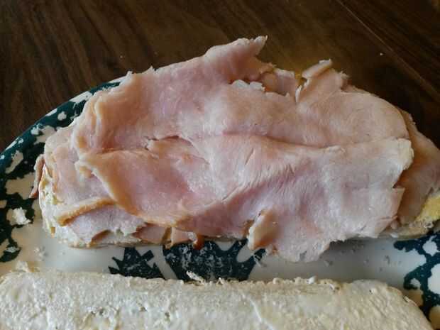 Capa pavo ahumado sobre el pan cubierto de dijon, como te gusta, dependiendo de cómo hambre son de espesor. Me gusta tres rebanadas gruesas, que mantiene los sabores equilibrados con el pan, queso Brie y espinacas.