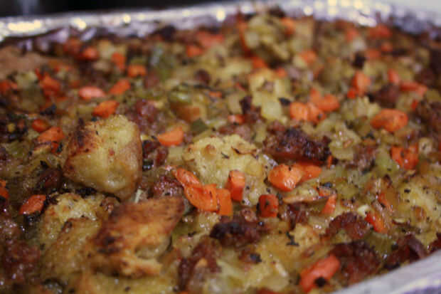 estamos en el buen camino una familia inolvidable estilo de acción de gracias con esta receta. Entre la salchicha sabrosa, dulce y tartas manzanas confitadas las nueces, yo diría que esta receta es un home run! Cortar más de la mitad de la mantequi