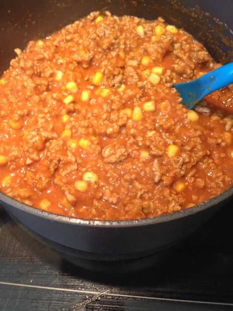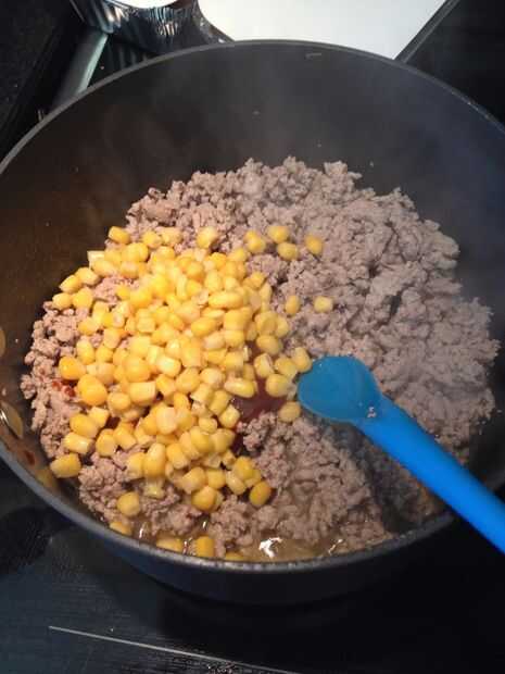 Añadir salsa de chipotle a la picada, luego el maíz (se pueden utilizar otras verduras-pimientos, hongos etc.)