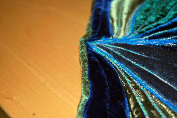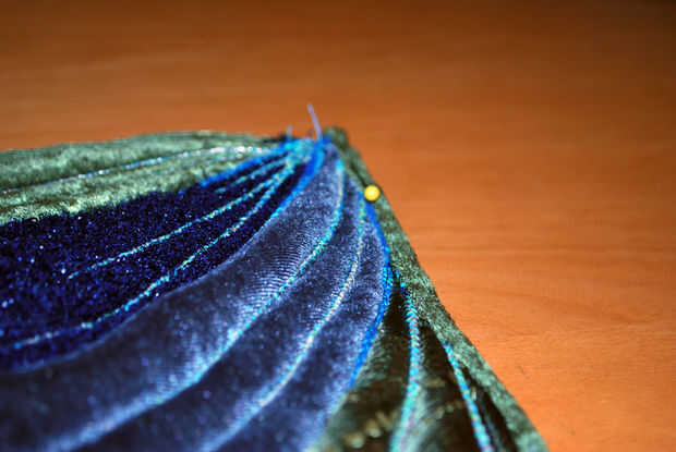 Una vez que terminé de copia de seguridad de ambos cojines, doblé sobre los bordes del terciopelo en la parte superior por lo que hicieron una bonita y delgada con bordes laminados para rematar los bordes exteriores. Luego inmovilizados los bordes laminados y les cosió limpiamente al frente. Algunos bordes llevaron fácilmente a ser zig-llegamos abajo, pero en otros lugares el terciopelo se movió alrededor de demasiado para que sea posible. Esas piezas que cosí abajo a mano. En un par de lugares el terciopelo mueve alrededor mientras acolchado del respaldo y ahí solo no era suficiente para doblar izquierda. Esos bordes hacia abajo para que coincida con el terciopelo y el zig-llegamos bien con el hilo negro.