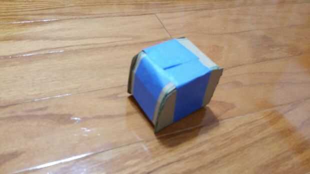 Trazar las dos partes que faltan de la cabeza y recorto. A su respectivo lado con cinta adhesiva y cinta adhesiva las dos partes interconectadas por los palillos, así. La cabeza se acaba ahora.