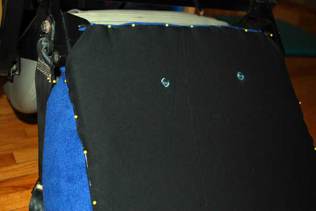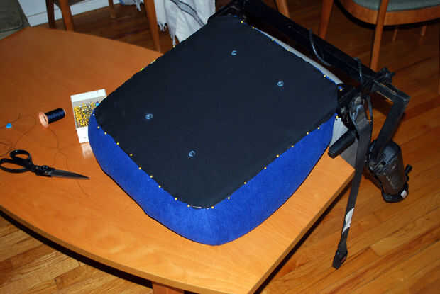 Hubo un par de puntos que no pude pin porque la estructura metálica del asiento estaba en el camino. Había doblado hacia abajo de la tela cruzada sobre esos puntos y me cubrió a las telas juntos a cada lado.
