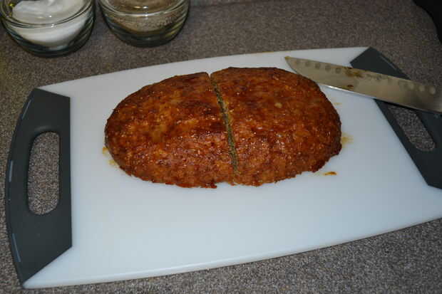 2. deje que el pastel de carne enfríe 10 minutos antes de rebanar y servir.