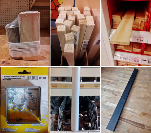 Todos los materiales se pueden encontrar en una tienda de bricolaje excepto las pelotas de tenis, que se puede encontrar en una tienda de deporte o juguete