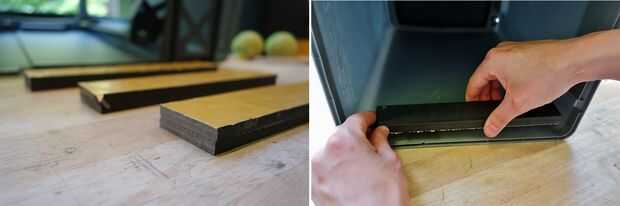 4. barras metálicas cinta (ahora más grueso y más pesado) en los lados interiores de la papelera de