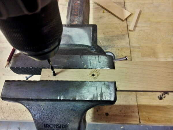 5. hacer 2 pequeños agujeros con el taladro (diámetro 3-4 mm) en la parte más pequeña.