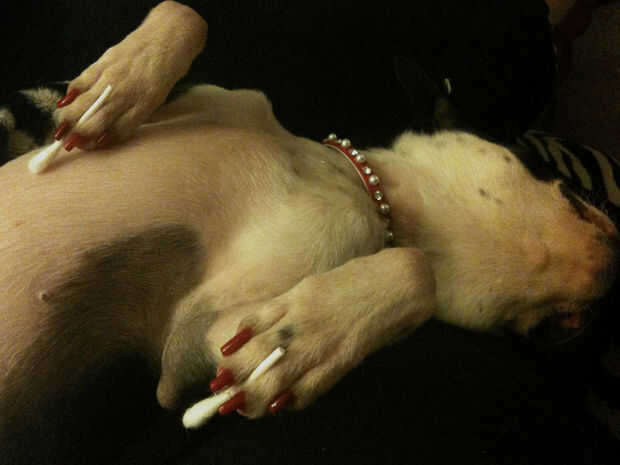 La manera que usted puede hacer esto es jugar con sus patas, a menudo y a veces al azar. Juego con mis patas de los perros mientras se están poniendo sobre mí. Es casi como un mini masaje y se les utiliza a los sentimientos pone. Esto realmente le ayudará a romper su perro en la rutina de sus patas ser tocado. Usted debe hacer esto, con seguridad, con otras áreas que están incómodos con. No queremos que carecen de confianza en ti. :)