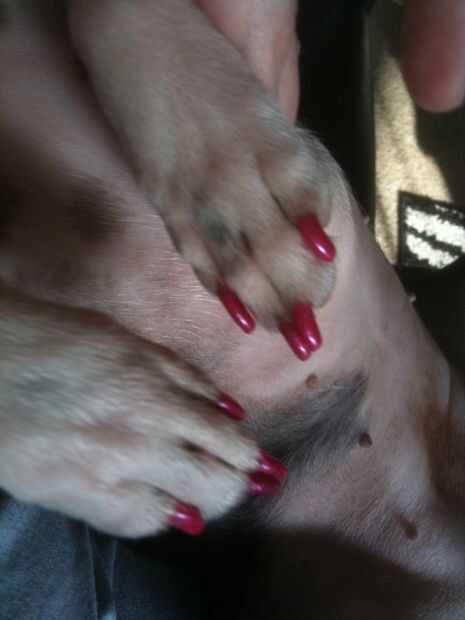 Desde Panda ama la atención dar a ella y ella está acostumbrado al tratamiento, ella sólo escalofríos por todo el tiempo. Es bastante increíble lo fácil que es hacer sus uñas. Usar esmalte de uñas humana, pero he oído que hay perro Polaco hacia fuera en el mercado. Incumbe a usted, si quiere gastar el dinero en él. No debe de preocuparse por tiempos de secado debido a su relajación, por lo que yo sólo uso mi esmalte de uñas.