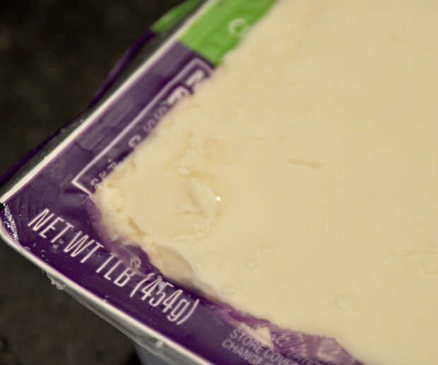 El tofu es más específico. Queremos suave, o silken tofu. Si abre el contenedor y encontrar un bloque de tofu nadando en el agua, la use para un salteado de verduras agradable ya no se va a trabajar para esta receta. Queso de soja suave se vierte en la tina en la fábrica por lo que lo llena todo el paquete a los bordes.