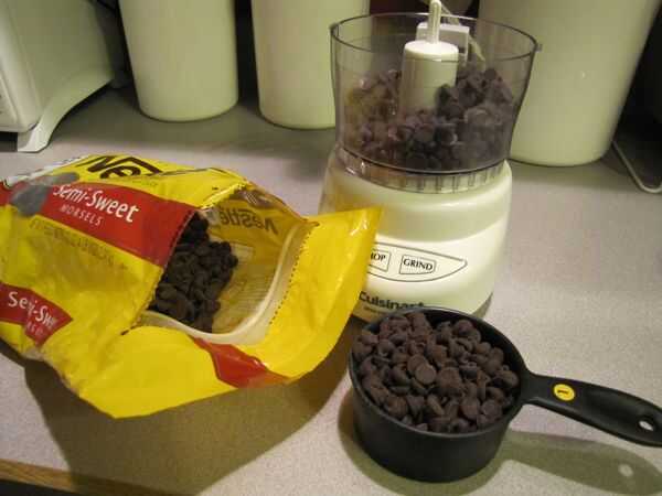1. pulso el chocolate chips en un procesador de alimentos hasta obtener trozos de chocolate