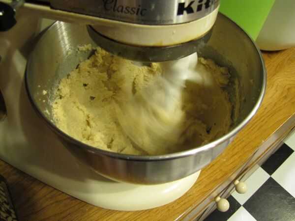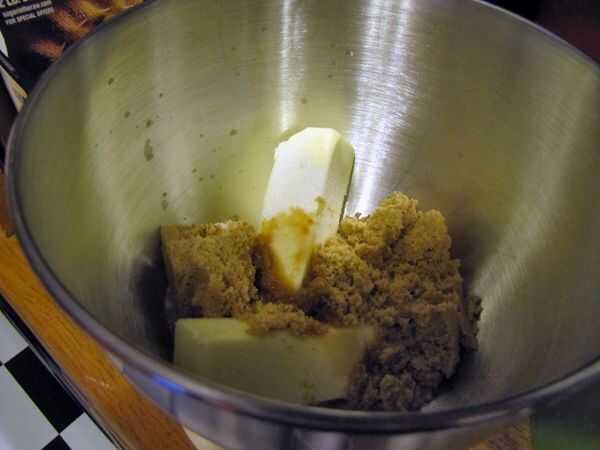 3. batir la mantequilla, azúcar granulado, azúcar moreno y extracto de vainilla en el tazón de la batidora grande hasta que esté cremosa