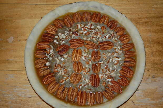 Come seria buena tarde!Mi esposa Barbara y me encanta el pay de nuez Chocolate!Nos han cambiado la receta para este concurso y que hemos creado un ganador de un PI / Pie.Se decidió fundir los trocitos de chocolate negro, a continuación, añadir el cho