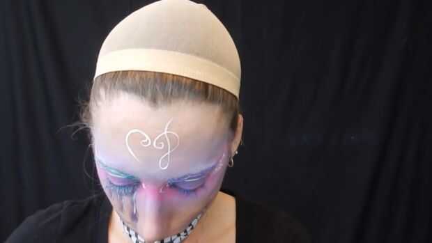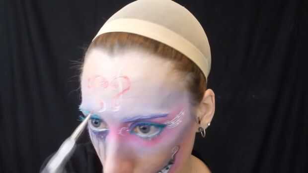 Me agregan notas musicales a mi frente con delineador blanco luego pasó con sombra rosa.