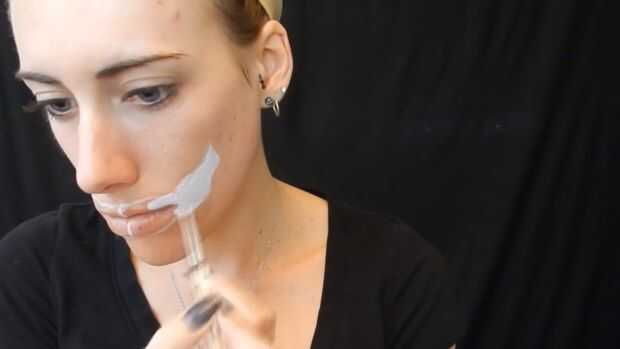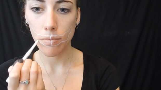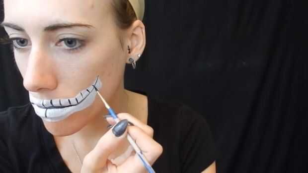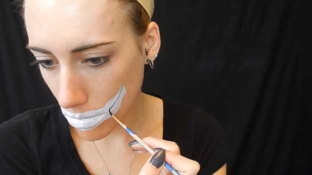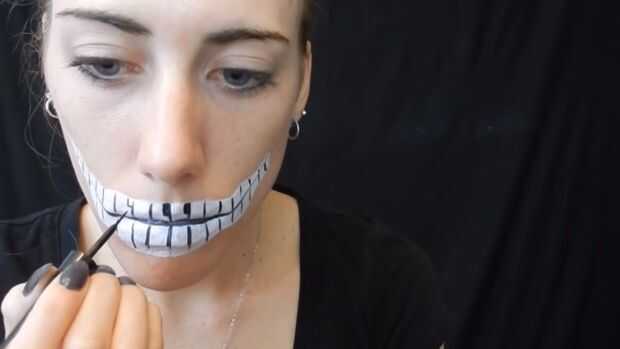 Usando delineador blanco esbocé mi boca, entonces utilicé pintura de cuerpo blanco para rellenarlo en, cuerpo negro de pintura para hacer teclas de piano.