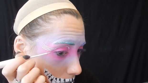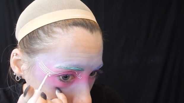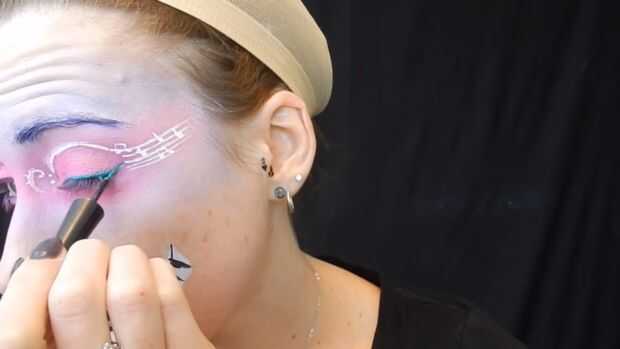 Usando delineador líquido blanco que hice algunos detalles... como un delineador de ojos del ala con 5 líneas (como una hoja de música) y algunas notas de la música.