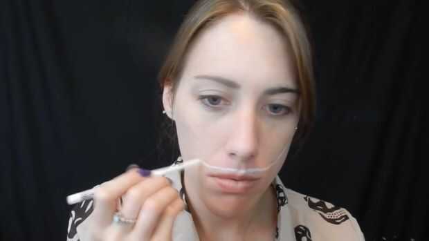 Esboce la boca con delineador blanco y poner en un casquillo de la peluca. = P