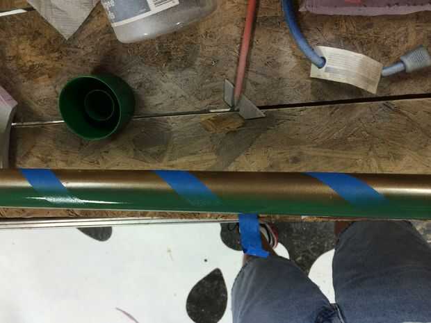 El mango es base oro y una espiral de la cinta, luego verde, otra espiral de cinta y neón amarillo