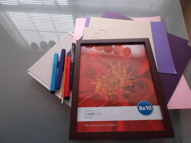 Cartulina, frame8/10, plumas de dibujo, tablero de corte, cuchillo, pegamento, lápiz de color