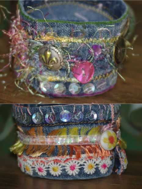 Incluso he hecho jean puño braclets con arranque corte estilos de jean de corte pulgadas a sólo un par del dobladillo de cada pierna en primer lugar, les cose juntos y poner cualquier adorno quería (ver imagen adicional). Esa es otra instructable.