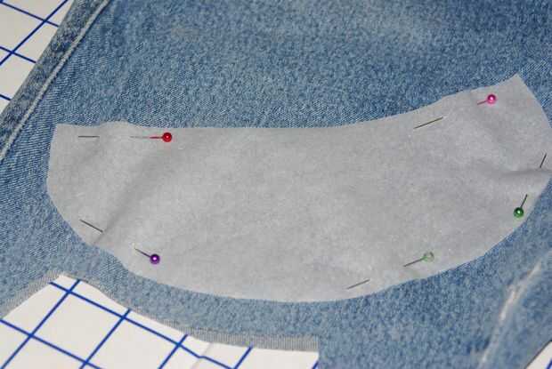 Entonces sólo tiene que colocar la visera patrón en cualquier lugar por encima de que los pantalones vaqueros, debe existir un montón de tela izquierda. Asegúrese de que no hay un agujero o un bolsillo o algo extraño en el tejido de la espalda antes de recortar los paneles.