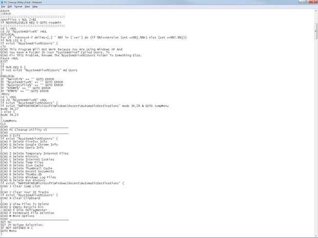 Si eres como yo, probablemente tiene de espacio en disco en su computadora que significa que tienes que ir a través de sus archivos y programas para ver lo que se puede quitar. O estás cansado de las utilidad de limpieza siempre molesta en pagar el piper. Así que para solucionar este problema, he creado un archivo por lotes que puede agresivamente fregar tu disco duro limpio de muchos archivos basura, liberando (normalmente) en cualquier lugar desde decenas hasta miles de megabytes de espacio en disco perdido de otra manera. Este archivo es una herramienta de protección gratis y simple pero potente de limpieza y privacidad. Así que aquí está. Con este archivo se puede borrar varias cosas tales como archivos temporales, accesos directos de documentos recientes, cookies de internet, ect. Si conoces el lote/cmd/DOS podría modificar este código para agregar cualquier más características que usted puede. Pero la edición incorrecta puede resultar en daños o pérdida de datos.