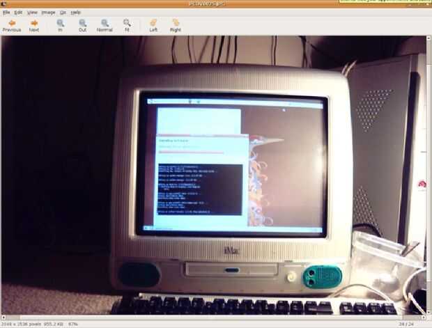 Solo a algunos otros dispositivos pxebootable. Incluso utiliza un viejo pentium 1. Se olvidó de tomar una foto de él arrancado mediante un disquete, pero los resultados son los mismos. Incluso saque a 128 megas de ram 256 pentium en y arrancado todavía. Mac pueden ser clientes de delgado también, pero debe soportar el servidor netboot y los clientes de Apple.