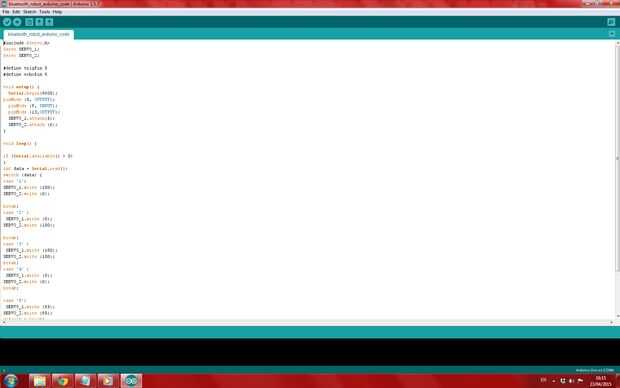 En primer lugar, abrir el código de Arduino. Después de abrirlo, subirlo a la Junta. Asegúrese de que el módulo Bluetooth se desconecta mientras se carga el código, de lo contrario se producirá un error y no funcionará. Después de que la carga está completa, puede volver a conectar el módulo Bluetooth.