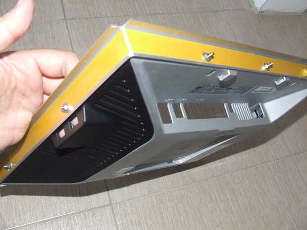 La pantalla táctil estaba centrada sobre el área activa de pantalla y asegurada con cinta scotch (sí, es suficiente, portátiles están llenos de eso). Cables fueron conectados y asegurados con cerraduras de cremallera. He optado por una instalación en modo de retrato debido al espacio disponible. La configuración del monitor era la parte más dolorosa para mí. La solución de montaje final utilicé necesaria tantas noches de "dormir sobre él" que en algún momento yo estaba dispuesto a renunciar. Yo no aburrir con detalles, digamos que tienes que pensar tus movimientos con suficiente antelación. De lo contrario usted riesgo de dañar el monitor, la pantalla táctil o lo que es peor - la wetwall. Es el daño de la cocina. Y que a cualquier mujer en el fuego. ï