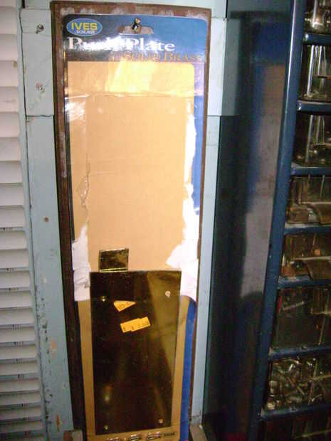 Ahora para algunos latón. El latón es a la voluntad de parecer caro, pero sólo cabeza abajo a la ferretería local y recoger una placa de puerta de latón. Es perfecto para este proyecto.